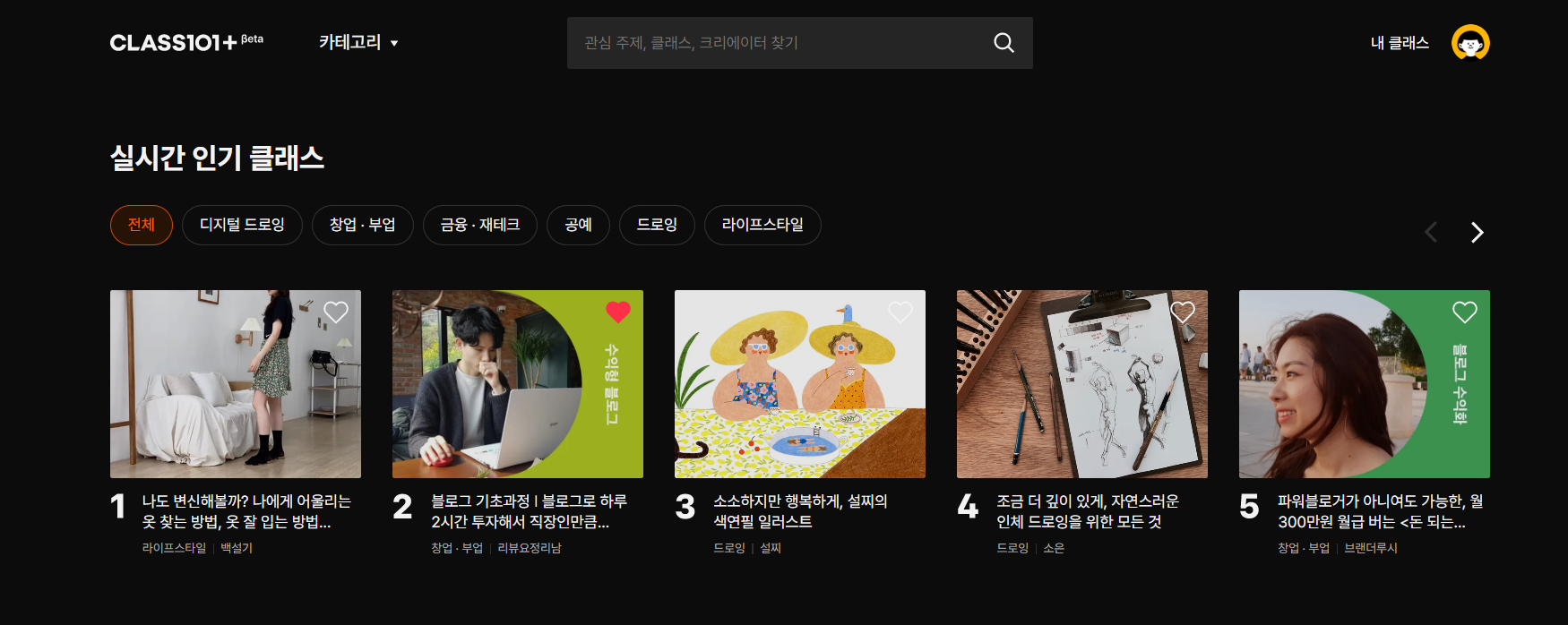 클래스 101은 대표적인 유료 강의 플랫폼으로, 탈잉, 크몽, 숨고 등 여러 사이트 중 가장 인기가 많고 강의가 다양한 플랫폼입니다.